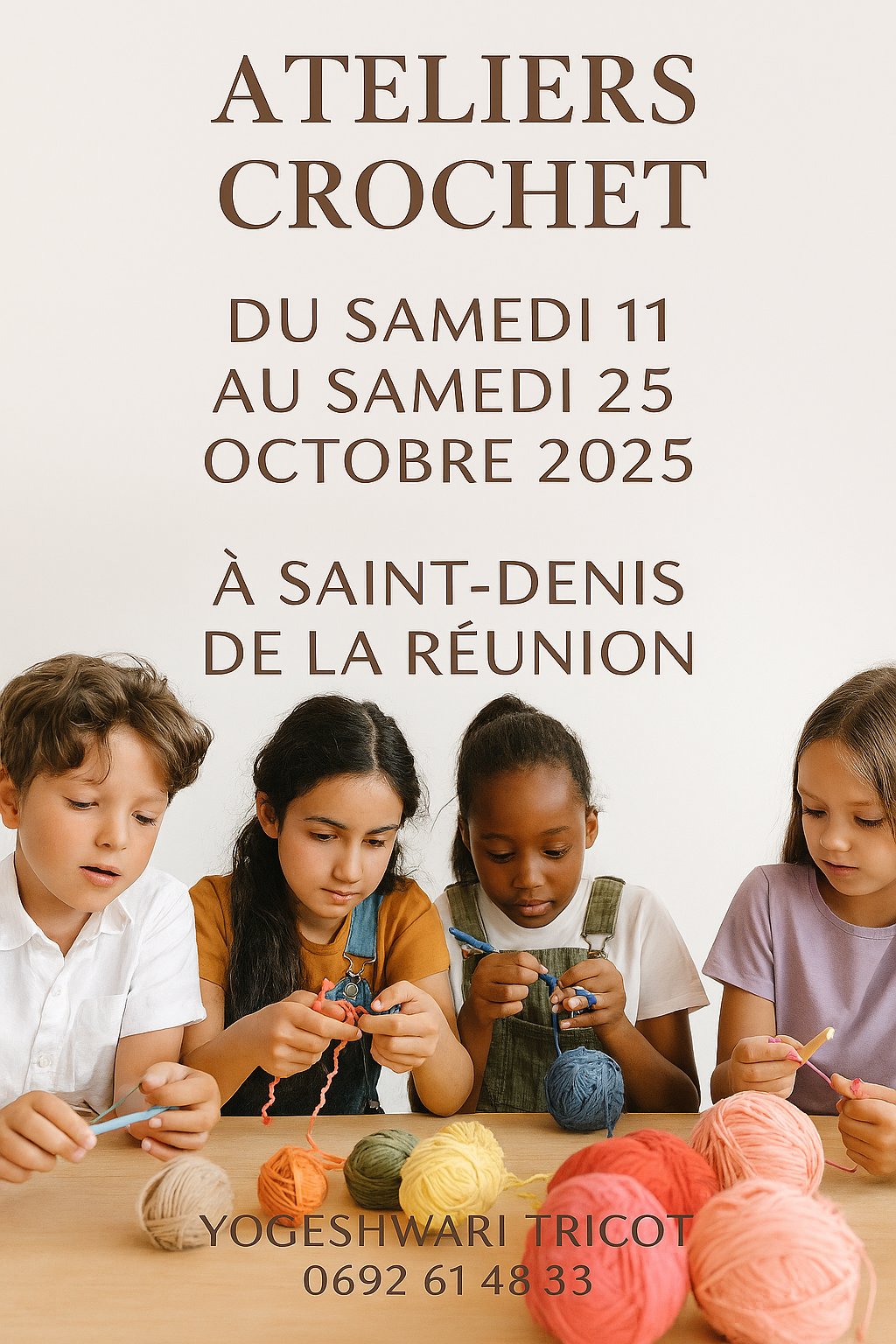 🧶 Atelier de crochet pour enfants- Yogeshwari Tricot propose un atelier crochet enfants à La Réunion pendant les vacances scolaires.